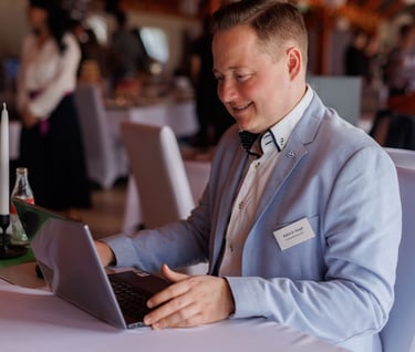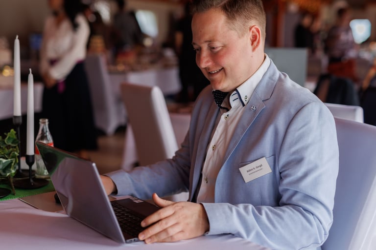 Sötét zakóban, fehér ingben, kényelmes vászonnadrágban, bőr öltönycipőben dolgozok, általában a dekoráció egyik alapszínével harmonizáló nyakkendővel, vagy csokornyakkendővel. Nem célom, hogy bárkin is "túlöltözzek" és mivel sokat mozgok kényelmes, de elegáns ruhatárból öltözködöm. Ha ennél is elegánsabb dress code az elképzelésetek, kérlek előzetesen egyeztessünk! Egyes fotókon és videókon olykor a fentieknél lazább szerelésben láthattok. Ezek vagy a hagyományos és autentikusabb menyasszonytánc idején, vagy jóval éjfél után készült felvételek, amikor már én sem "teljes harci díszben" feszengek, miközben mindenki a buli hevében szórakozik.Miként tudunk szerződni veled?